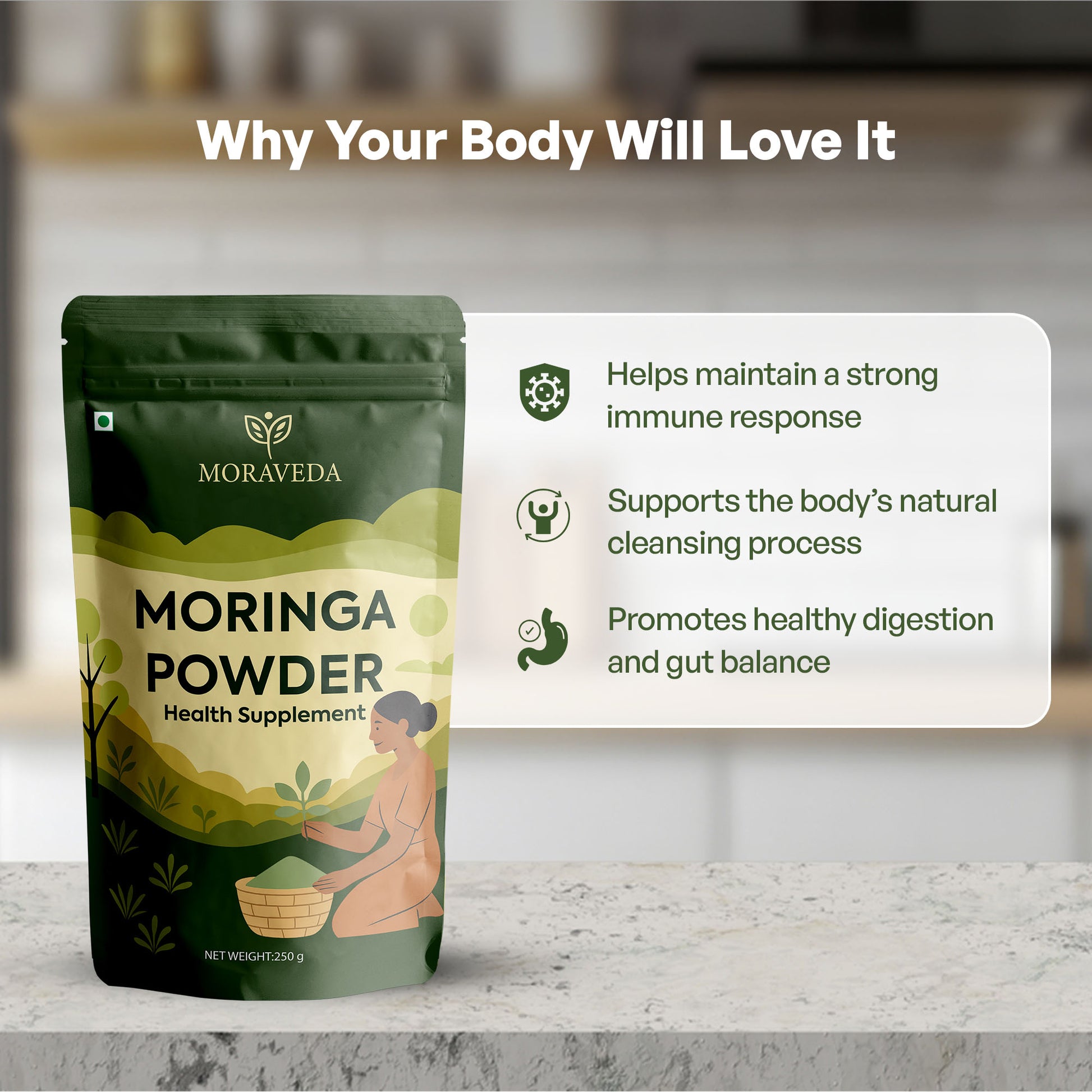 Clean-label moringa crafted for daily wellness — purity, quality, and easy nutrition in every scoop.